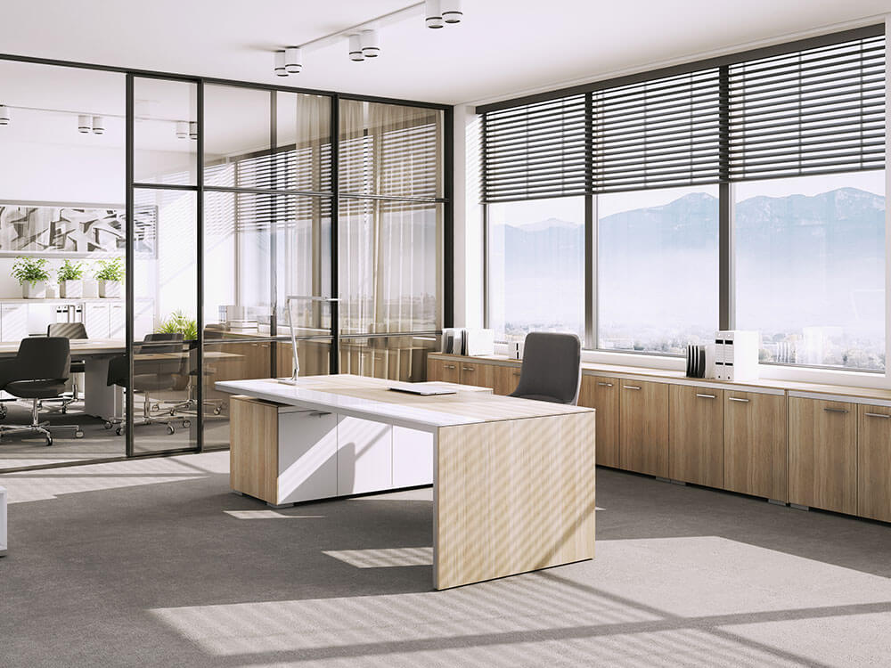- Inserts: Desks can be equipped with inserts made of 12 mm-thick Lacombe glass or melamine board finished with natural leather. The Desk with conference extension is equipped with a 100 mm wide glass insert.