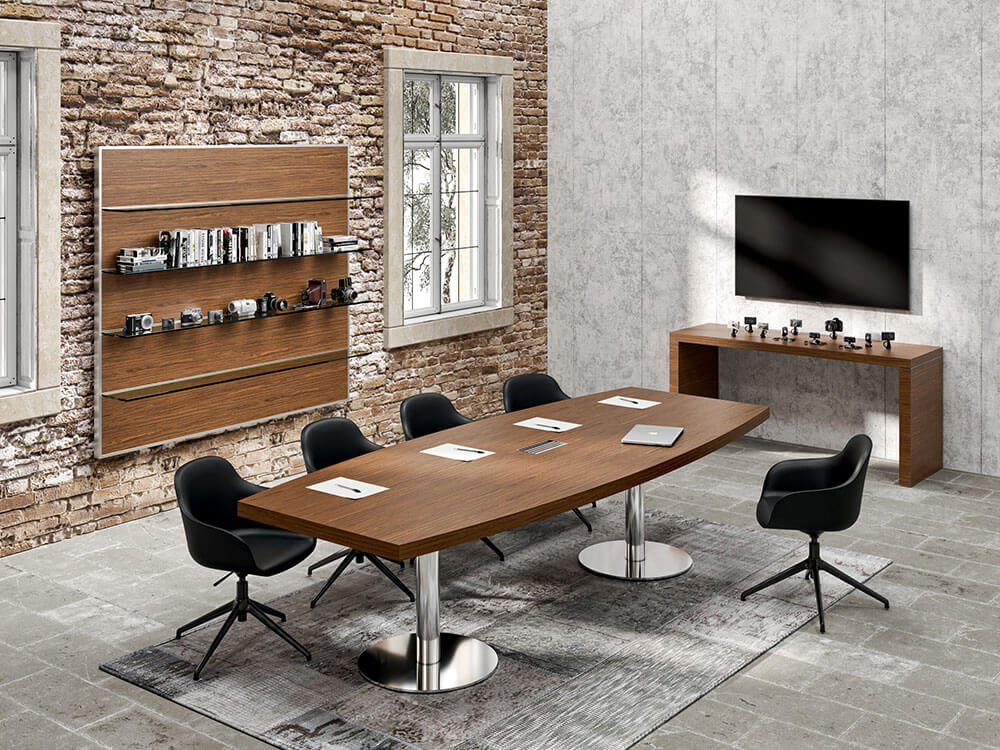 Alcee 2 - Barrel Shaped Meeting Room Table with Slab Legs or Trumpet Base