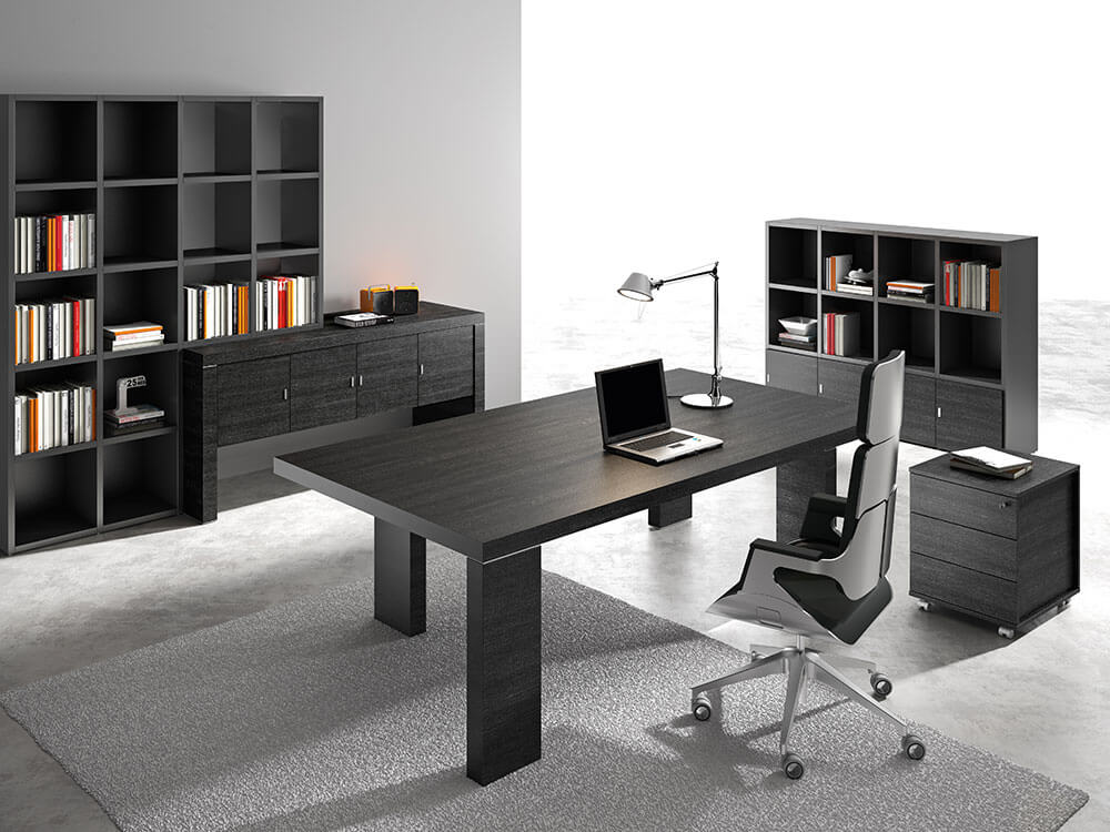 Alcee 1 - Slab Legs Executive Desk with Optional Return/Credenza Unit