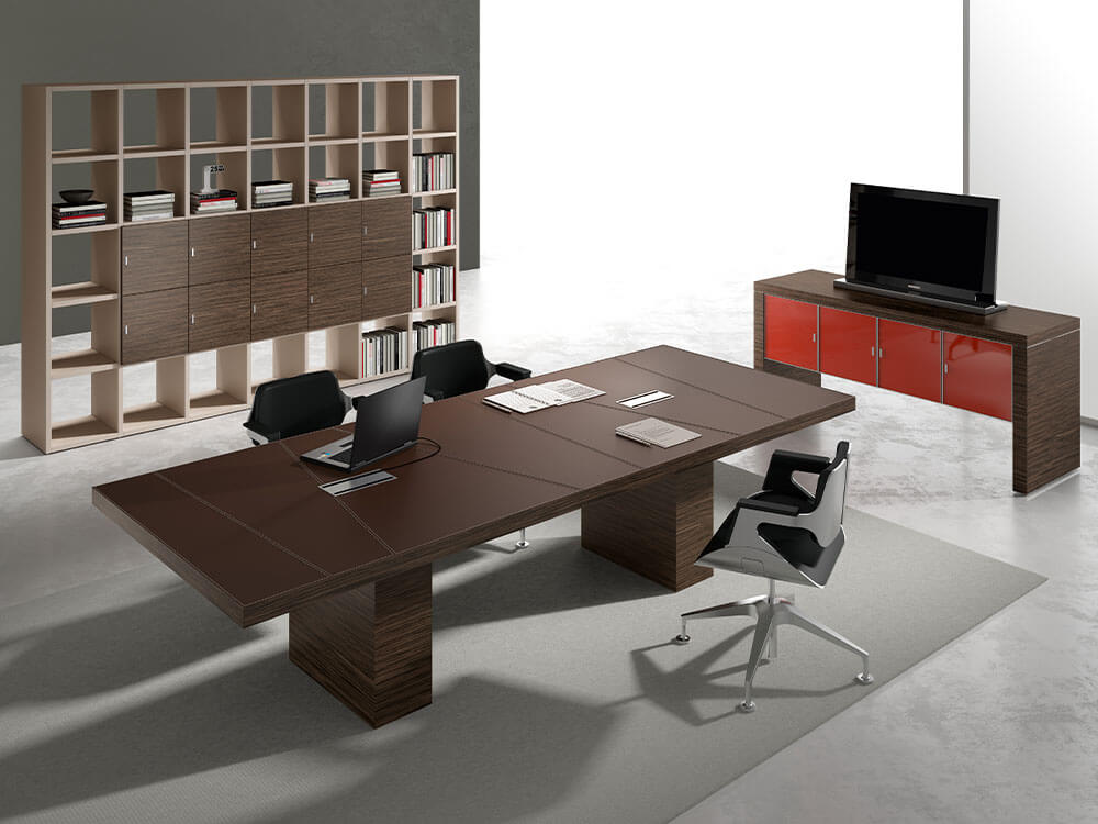 Alcee 4 - Rectangular Meeting Room Table in Slab Legs
