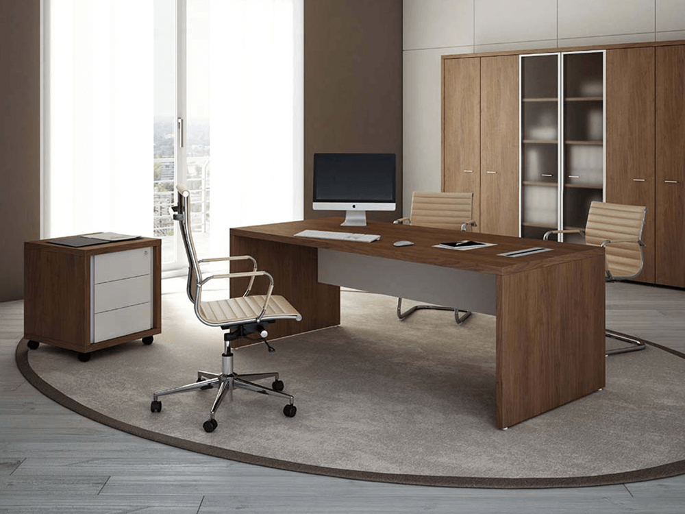 Alfonso is an Italian elegant and strong executive desk due to its great thickness of tops and sides. The ability to configure the desk and choose from a range of neutral colours, makes it a great choice for directors and managers. All configurations can be equipped with a lateral top access or a media box containing sockets and data cables.