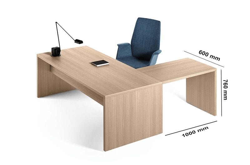 - Desk with 2 Modesty Panels: Made of 38 mm thick E1 class panels melamine faced (MFC) on two sides, anti-scratch and anti-reflective, with 1 mm thick perimetric ABS edges.