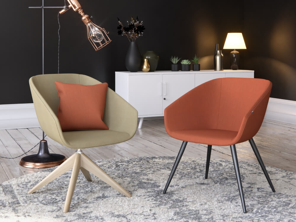- Visitor and Lounge Chairs: Fully upholstered seat.