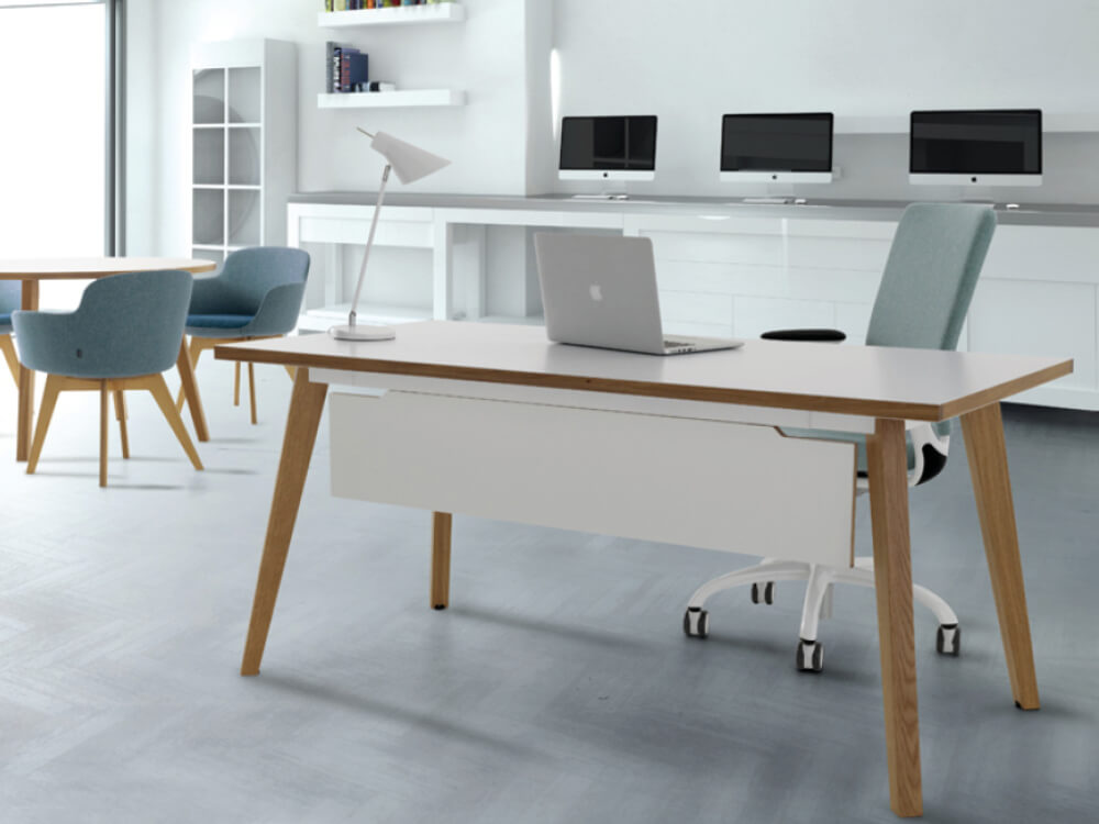 This rectangular desks provide a less formal and more friendly style of furniture for the modern office or executive space. Frames are available in solid oak or walnut with tops available in real wood veneer to match, or in a combination of laminate with solid wood edge profiles. This feature is also taken through to the modesty panel which also shows the same attention to detail and the solid wood edge profile. Cable management is managed through under table tray, including brackets leg vertical wire management zippy or standard height tables