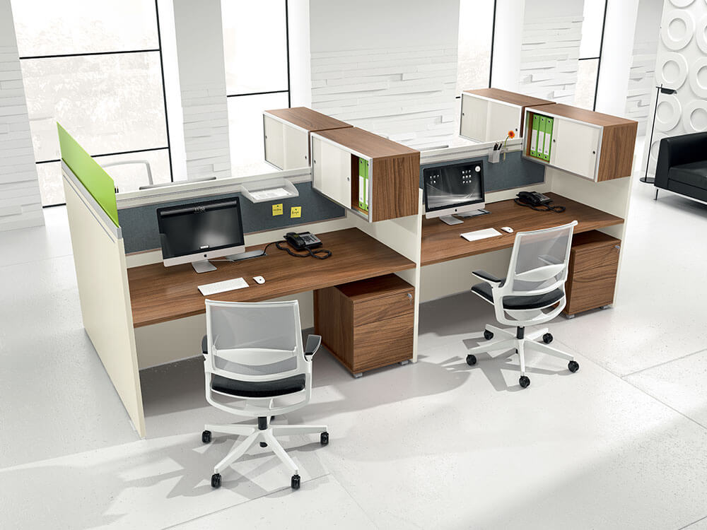 Amo 2 - Slab Legs Workstation with Front and Lateral Panel for 2,4 and 6 Persons
