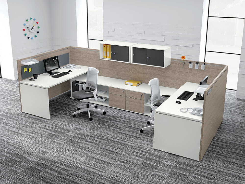 - Screens: Front fitted, rectangular partition screens can also be attached to desks by means of metal brackets.