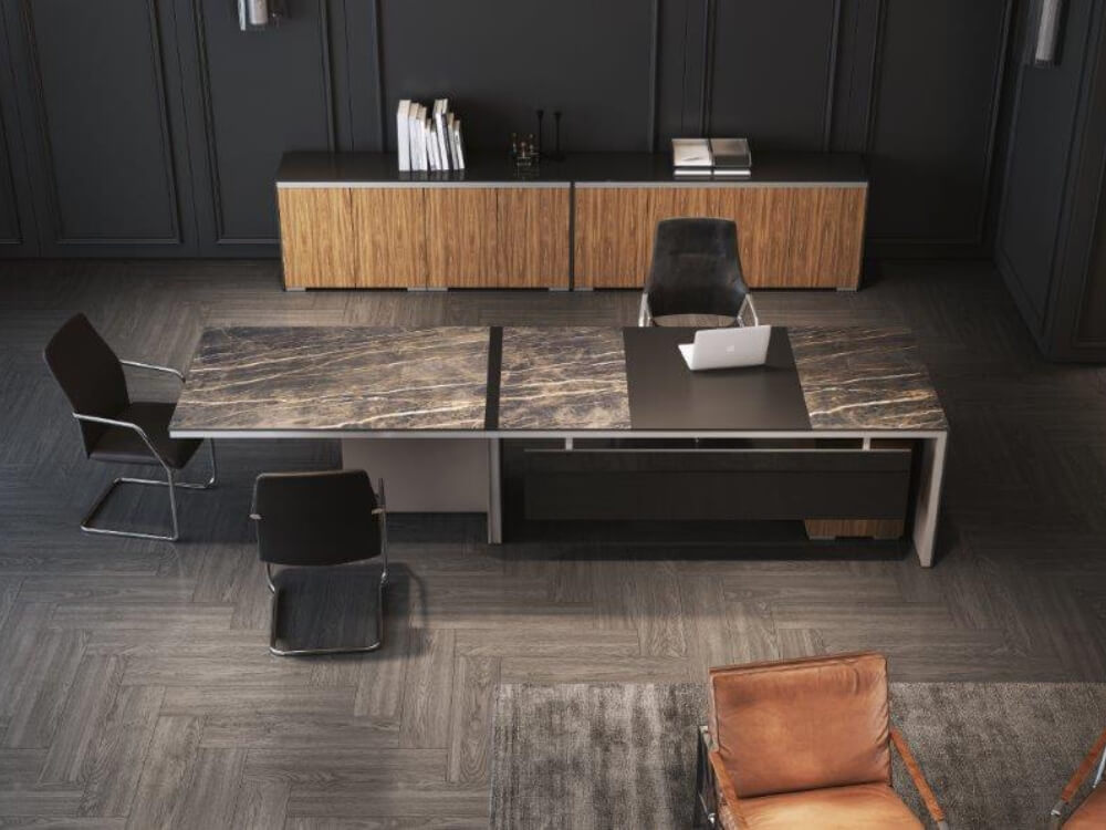 Aviana 2 – Polished Stone Executive Desk with External Lag and Optional Credenza