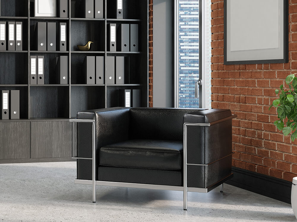 - Stylish stainless steel frame and integrated leg supports wrap around the chair to create an illusion of being ‘suspended’