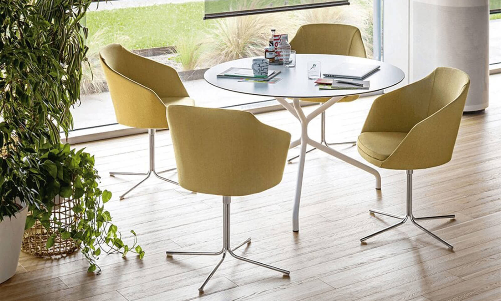 Not every moment at work should be a rush of productivity. Encouraging employees to take intentional pauses throughout the day can help prevent burnout and improve long-term mental resilience. A calm zone, thoughtfully furnished and separate from primary work areas, offers a restorative space for short mental breaks. Use soft seating, muted colour palettes, and minimal furniture in these zones to establish a relaxed vibe. Add magazine tables or low divider screens to subtly define the area without closing it off. These small settings become powerful tools in promoting mindfulness and work-life balance within the office itself.