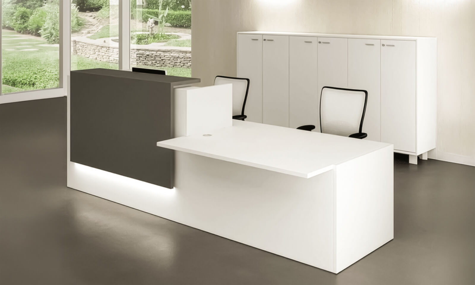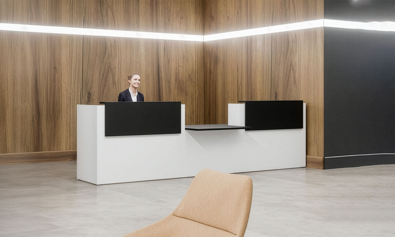 Desk proportions, counter levels, and interaction points were planned more intentionally, resulting in reception desks that supported a wider range of users while maintaining a clean and structured appearance.