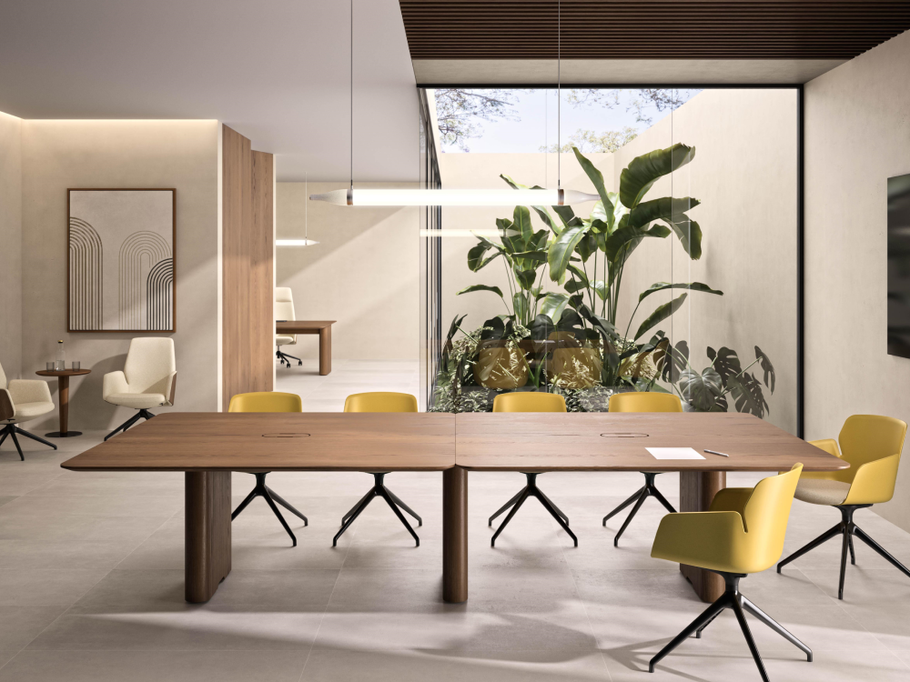 - Cable Management: The Machining Includes a 116 x 240 Cable Grommet Cover in Each Wooden To,p and its Corresponding Auxiliary Tray Through a Structural Crossbeam that Provides Stability to the. Table Assembly and Acts as a Cable Tray, made from MDF Fiberboard with a Density of 675 kg/m³, 20mm Thick, and Covered with Natural Veneer and 0.5mm Ash Tree Wood Edge.