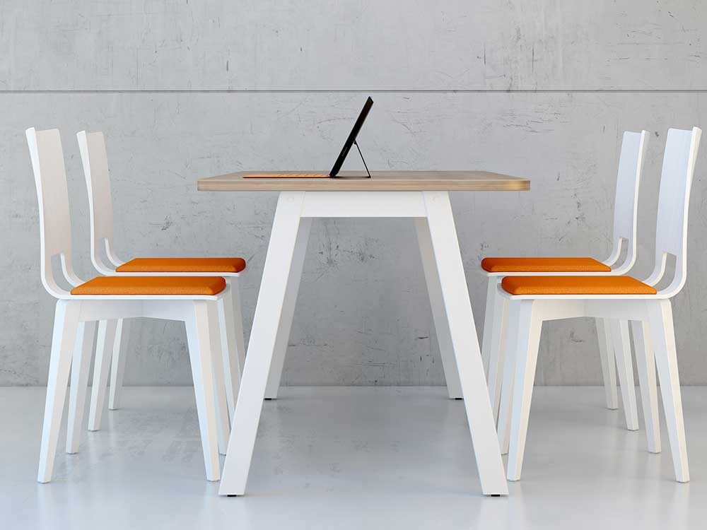 - A modern design which is simple and compact, yet functional. Non-upholstered chairs can neatly stack together for easy storage or transportation making it perfect for transient spaces.