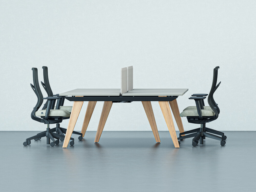 Columbo 1 - Double Bench Desk for 2, 4 and 6 Persons with Oak/RAL Leg Finish