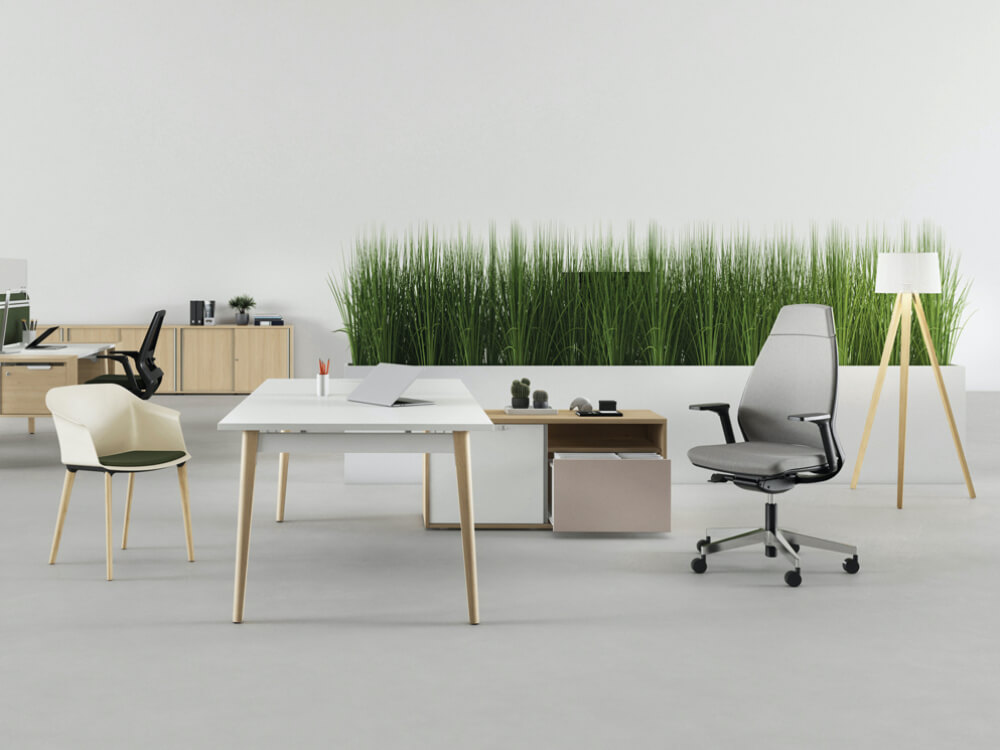 Bring nature indoors with our Wood Finish open plan office desk Cora 4. A rectangle office desk with an option to add a credenza allows the workspaces to be put together perfectly to create bigger workspaces in a modern way. Customise Cora 4 as an office desk in Dark Grey, Linen, Light Oak, Snow White, Black. plus your pick of metal mounting bracket. Choose your perfect size and credenza today.