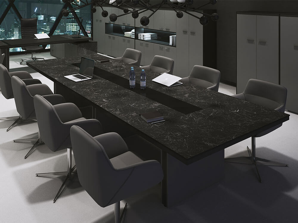 Dalon 2 - Polished Stone Rectangular Meeting Table with Optional Glass and Leather Inserts