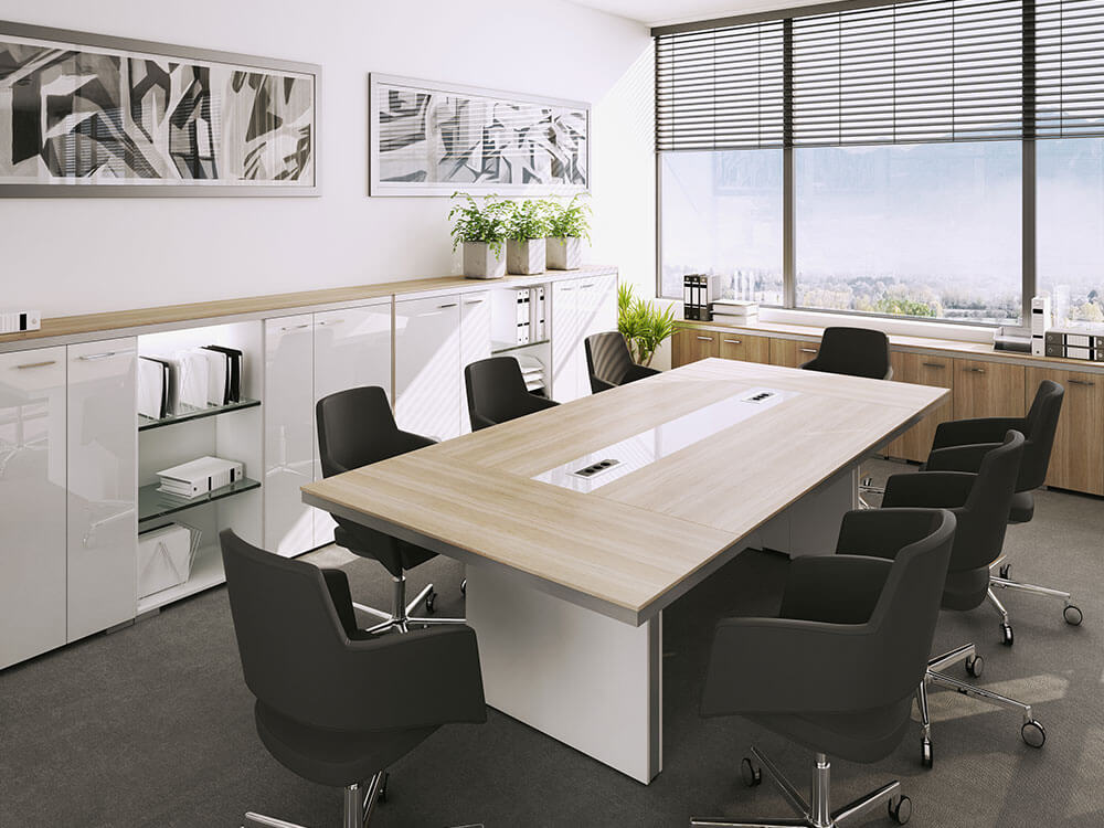 Dalon - Melamine Rectangular Meeting Table with Optional Glass and Leather Inserts