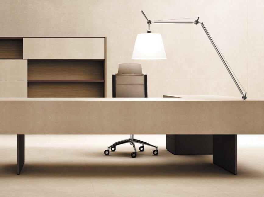 Often mistaken for belonging in a museum, Darcey is our most prestigious and contemporary executive desk. Add this iconic piece of furniture to your personal office and allow your clients and colleagues to be transfixed. Available in a huge variety of finishes in wood, leather, and porcelain, it gives the impression the worktop is delicately balancing on top of two slim slab legs, for the perfect contrast. Write Darcey on the top of your wish list.