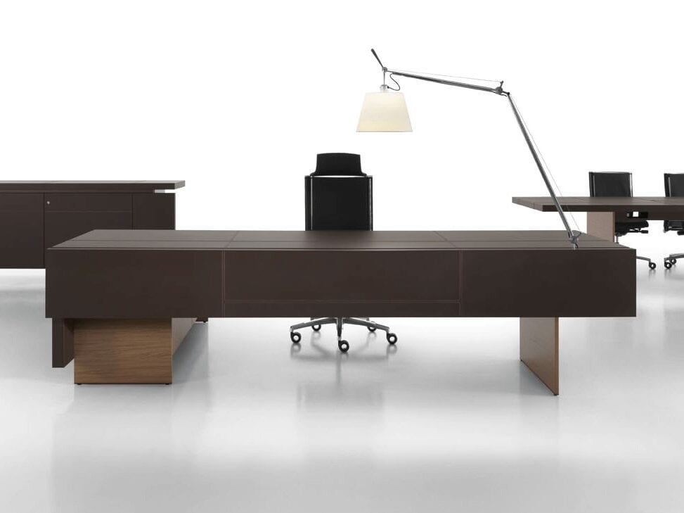 Often mistaken for belonging in a museum, Darcey is our most prestigious and contemporary executive desk. Add this iconic piece of furniture to your personal office and allow your clients and colleagues to be transfixed. Available in a huge variety of finishes in wood, leather, and porcelain, it gives the impression the worktop is delicately balancing on top of two slim slab legs, for the perfect contrast. Write Darcey on the top of your wish list.