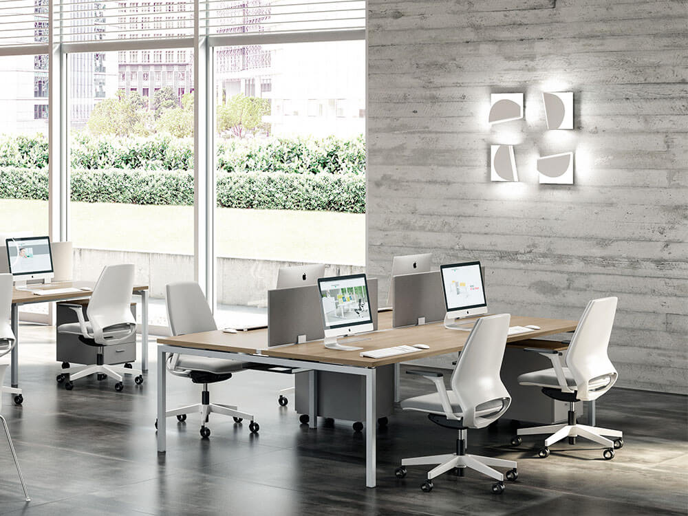 Dino 1 and Alvino 1 Bundle – Workstation for 2,4 and 6 Persons and Medium Back Upholstered Chair