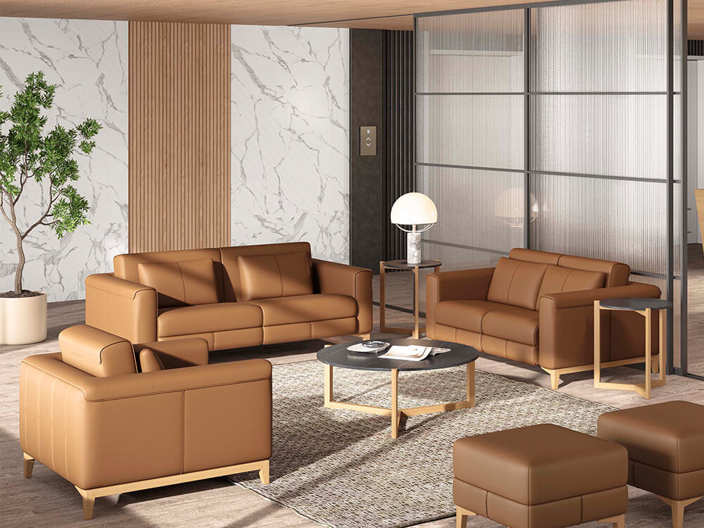 - Legs: The legs of the sofa are made of solid wood and run the entire width of the sofa. Varnished in 7 wood tones