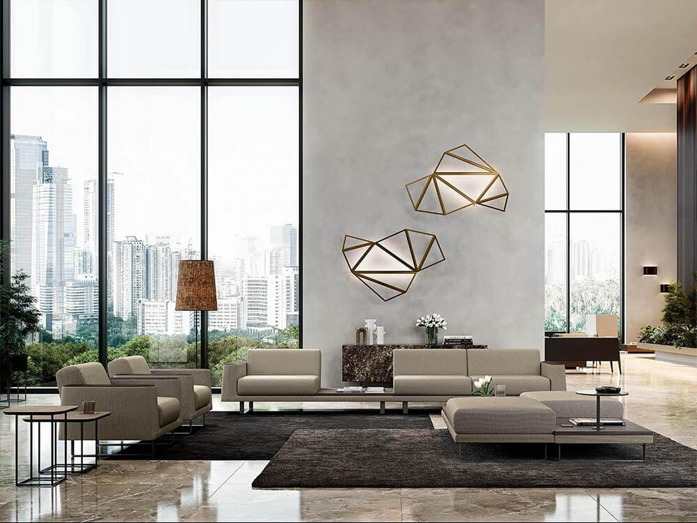- Highly elastic polyurethane foam slabs thickness 65 mm, density 35 kg/m3 + resinated wadding Seat and Backrest.