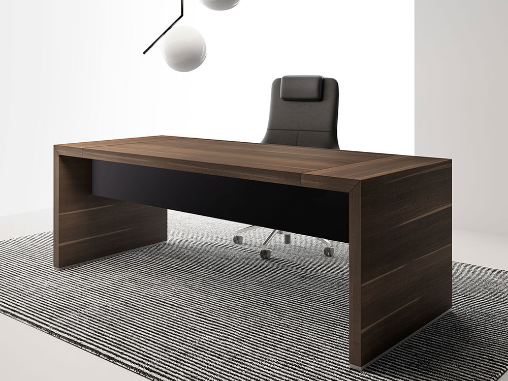 Gianny, designed for comfort, stands as an elegant executive office desk. The substantial thickness of the table contributes significantly to creating a bold and refined appearance. Its simple yet modern design makes it a perfect fit for any workspace. With a range of configurations available in both melamine and lacquered finishes, Gianny offers versatility. Additionally, you have the option to conceal the space beneath your desk with either a short or full-length modesty panel.