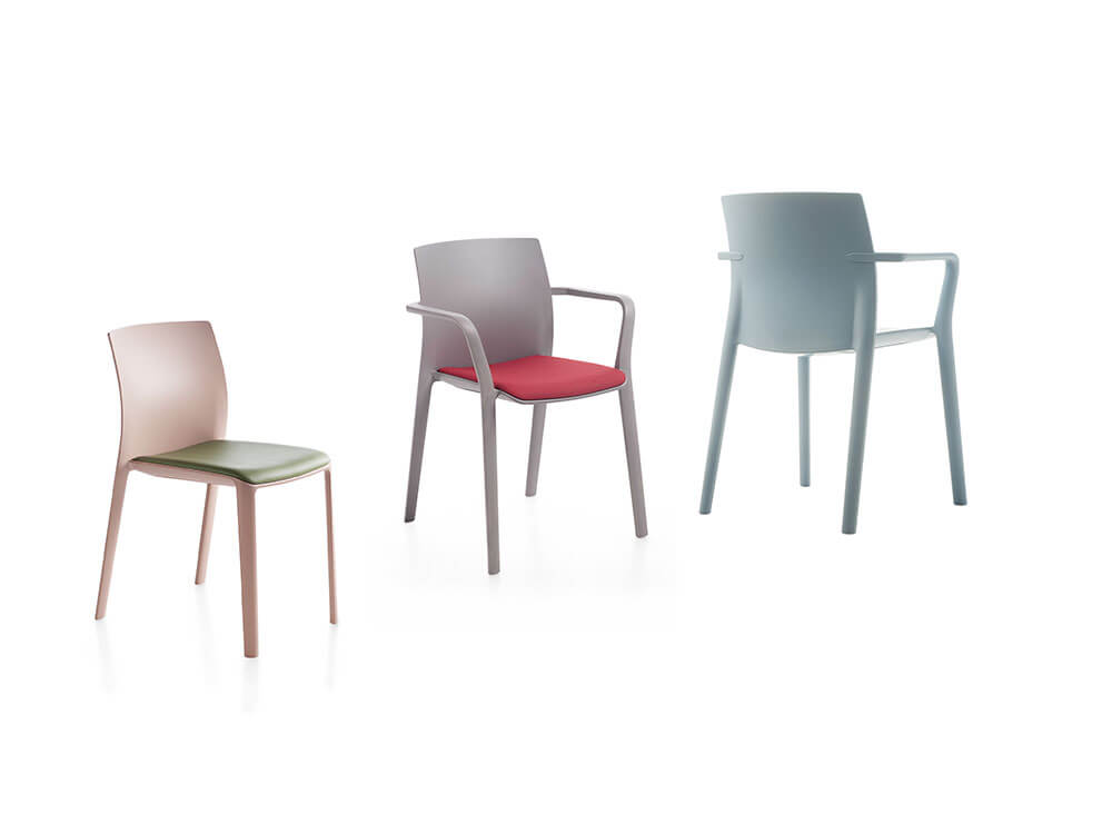 - The one-piece chair in polypropylene is re-enforced with fiberglass and is produced with gas injection molding. Chair without And With arms is a one-piece stackable chair in polypropylene, available in several colors cushion.
