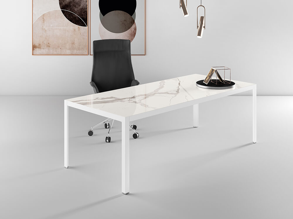 - Desk Finish: Bianco Statuario, Noir Desir