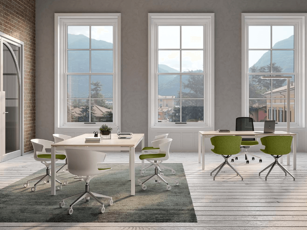 - Four Leg Base: frame made from Ø16mm highly resilient steel tube; polyethylene glides spacers on the underside of the seat covered with protective rubber for stacking.