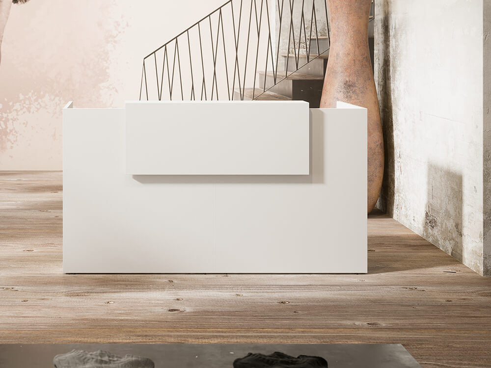 - Worktop and Front Panel: 25 mm thick Structurex® melamine-coated Top with 2 mm thick shock-proof ABS edging