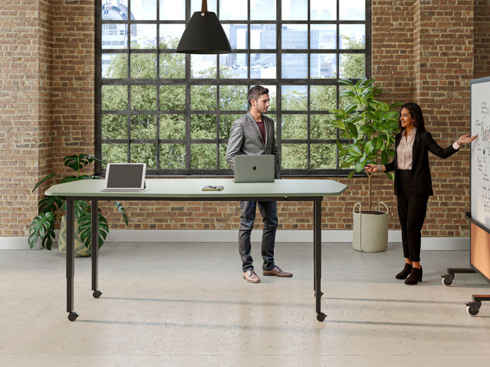 Enabling collaboration where and how you want, Jax is a mobile height adjustable table system that solves the requirement for a fully flexible tabling requirement. Battery power means there is no need to be tethered to a mains supply and a robust under-frame ensures outstanding stability.