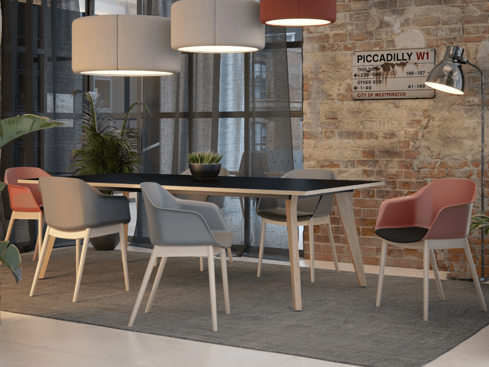 - Seating: Polypropylene shell, Polypropylene or wooden leg frame, Protective feet, Optional upholstered seat pad, Six polypropylene shell colour options.