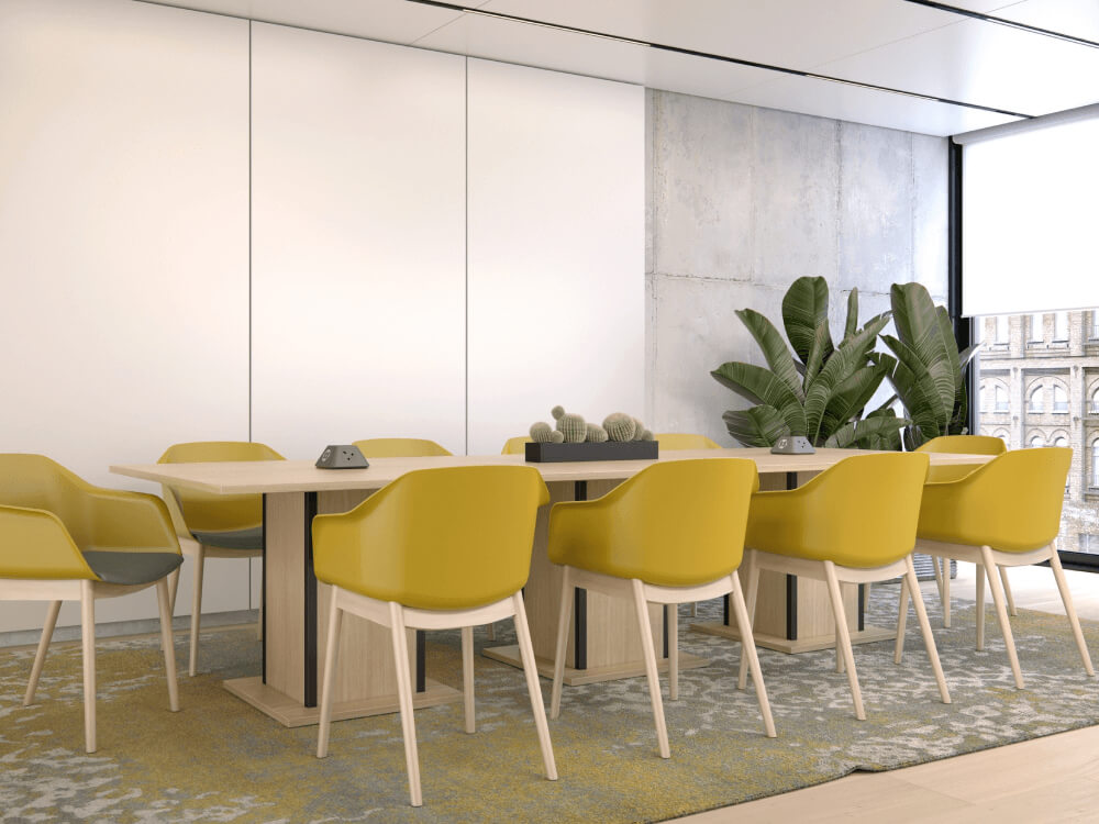 With its bold, strong presence ideally suited as a distinguished meeting table, Jino still delivers an element of sophistication in the workplace. With no bothersome table legs at the corners and a variety of table top sizes, Jino creates proximity and enhances communication between users. The unique base is robust and hollow, capable of housing multiple cables for installing power modules within the table top