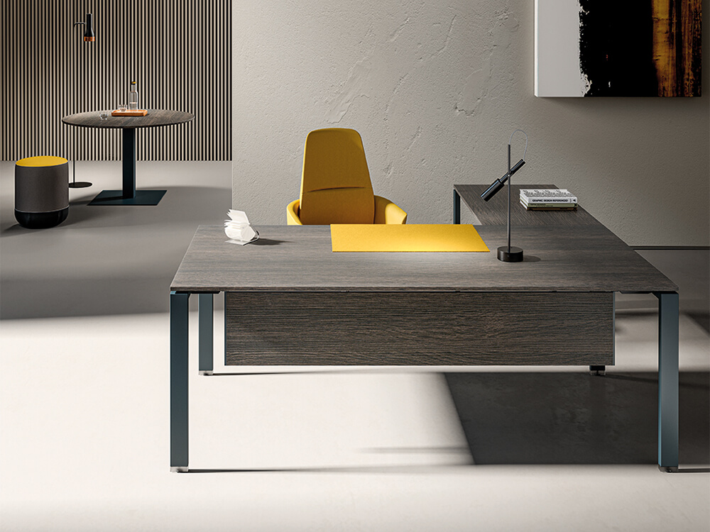 Lorenzo is designed by Perin and Topaz, and it comes in various melamine top and leg finishes. It has the option to add a small or large credenza to either side of the desk. Need more storage? Choose from one of two pedestals. With cable management, you can keep your cables organised.