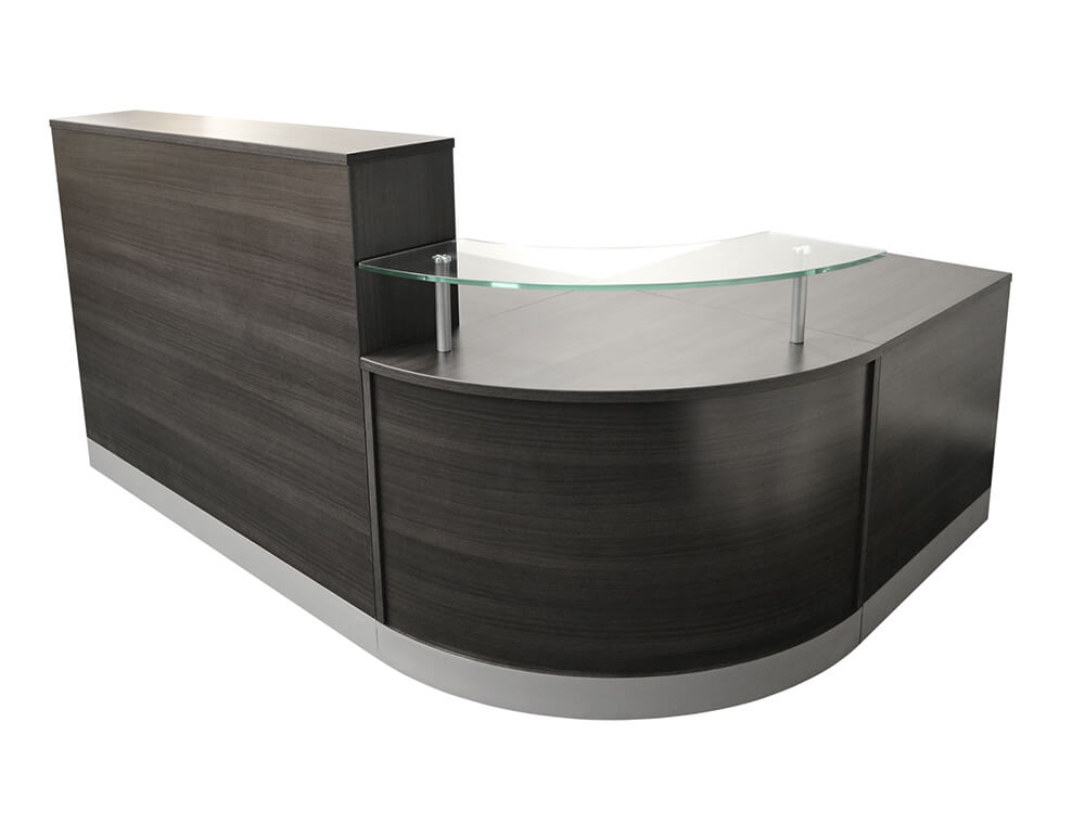 - Top: Available in four finishes with glass shelf and two silver ports to work area.