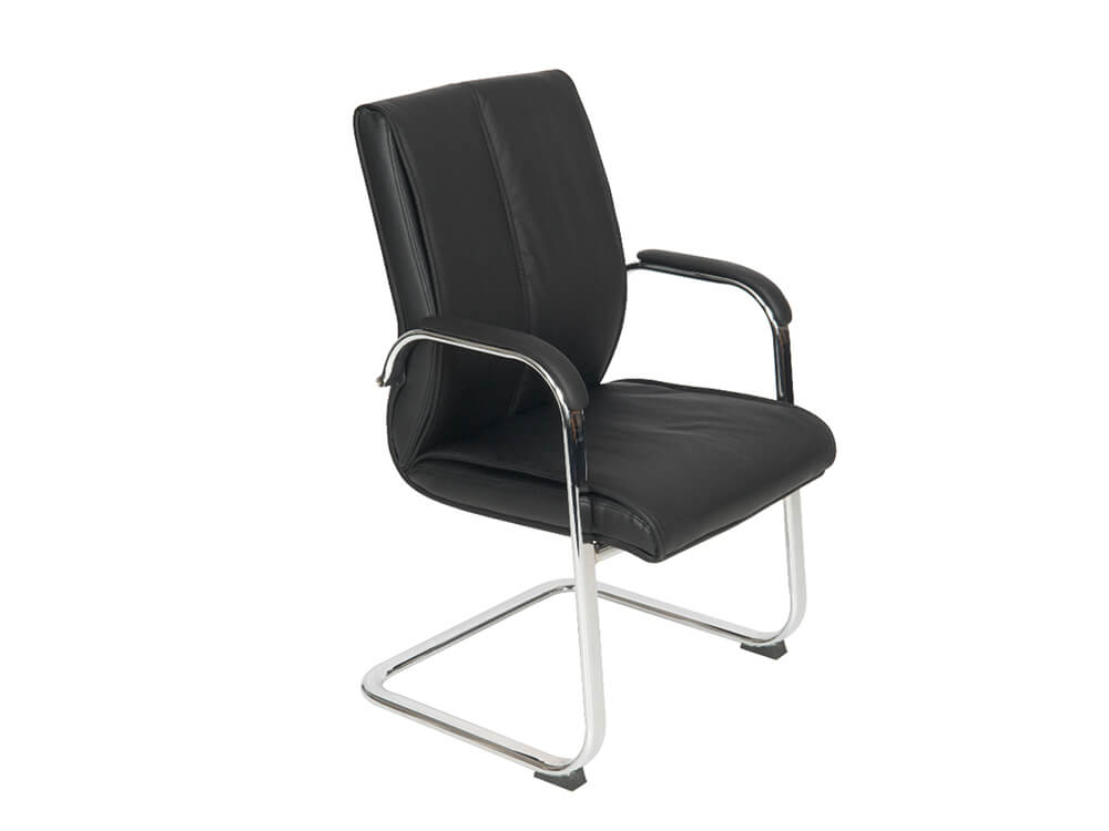 Madelaine 1 - Black Faux Leather Meeting Room Chair With Chrome Cantilever Frame