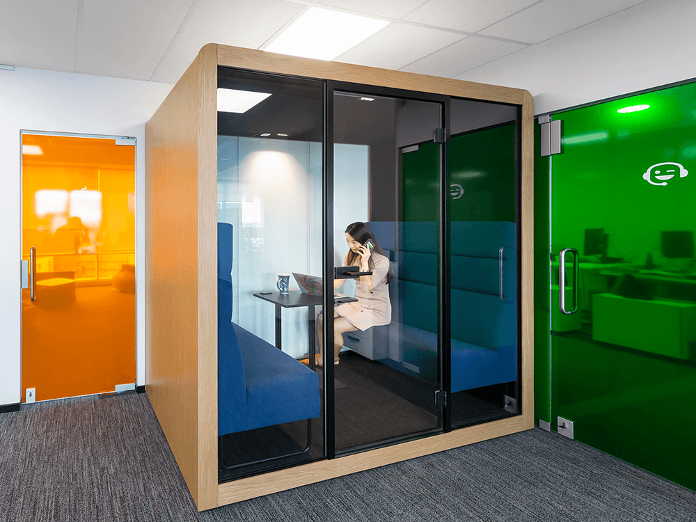 - This acoustic pod is perfect for individual work and phone calls.