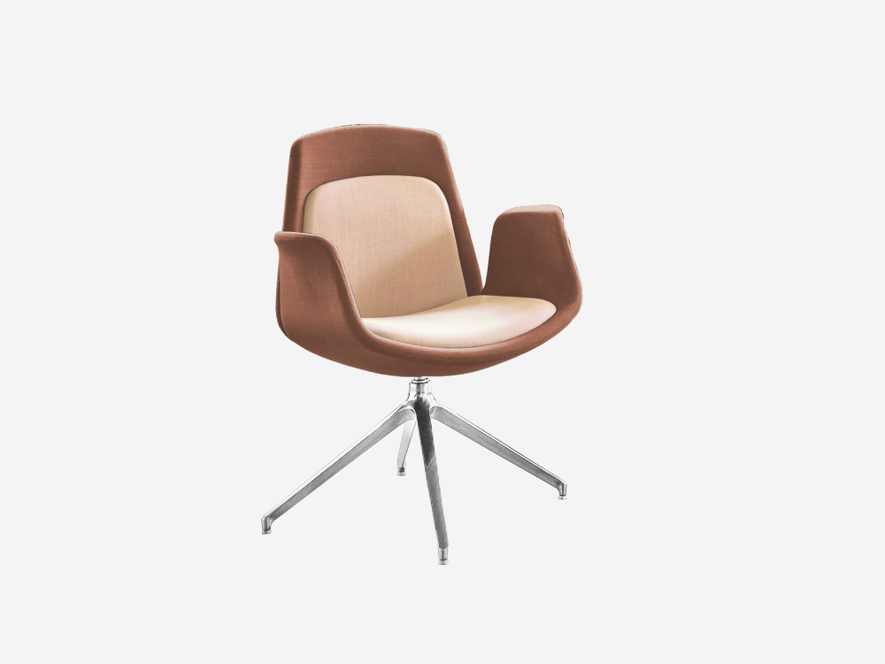 The armchair, which comes in leather or fabric and in a wide range of colours, is available in Medium and High backrest heights. A synchronised tilt mechanism can be incorporated into the frame.