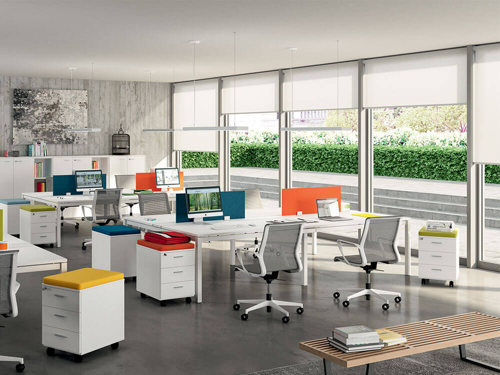 Nerolie - Bench Office Desk for 2 and 4 Persons with Optional Pedestal