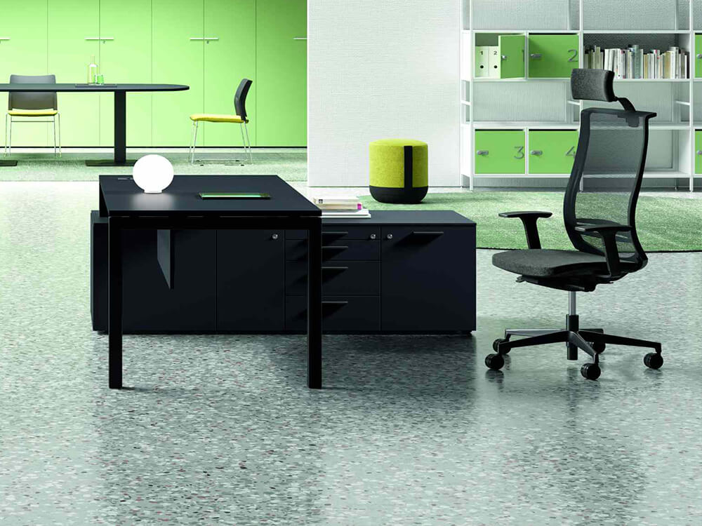 The Italian designed executive desk, Nicolo, offers a contemporary vibe and provides a new form of flexibility. The desk comes in a variety of finishes, and it can be complemented with a credenza unit which will provide more storage. To manage cables, consider adding electrification accessories.