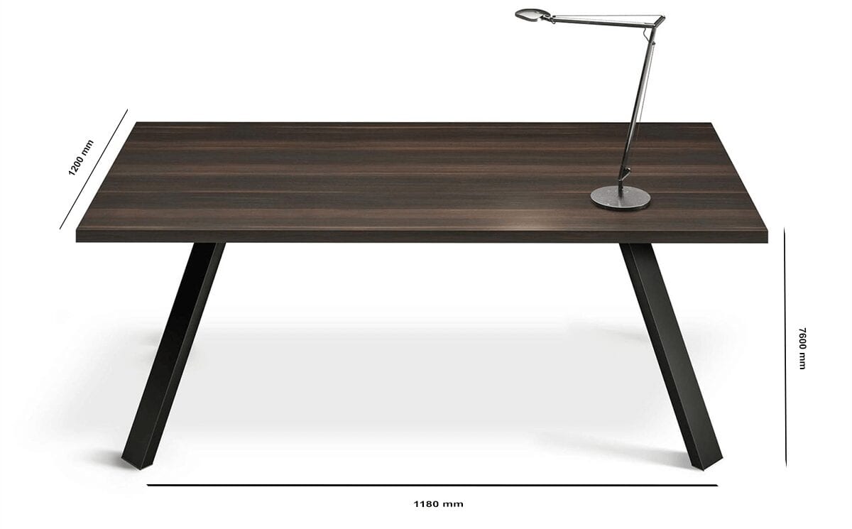 - Legs: Made of tube with rectangular section 100x40mm in decapped steel plate th.1,5mm epoxy powder painted. Legs are fixed to worktop through welded plate and screws fixed on metal inserts placed under the top.
