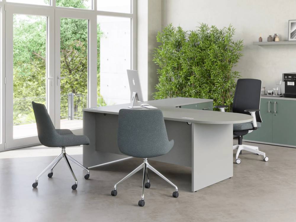 Odellia presents a sophisticated alternative to Slab leg desking by combining executive aesthetics with competitive pricing, while still retaining essential functional attributes. Optional cutback legs offer greater flexibility in configurations, enhancing user comfort and accessibility. Furthermore, the inclusion of cable management improves organisation and functionality.