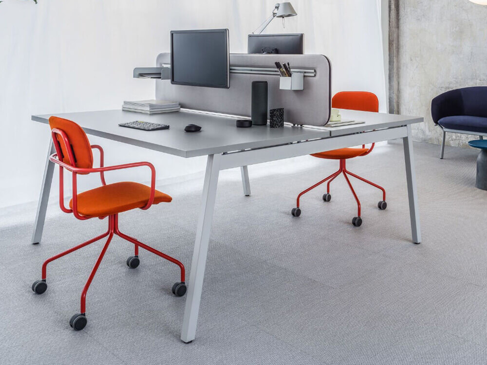 Desk: The office desk from the Padak 1 is for everyone who appreciates classic solutions in a modern office. Minimalism and the timeless design of the desk give many possibilities for arranging open spaces or coworking offices. The simplicity of design combined with ergonomics allows for the taking advantage of the desk's potential. Workstations can be separated by an acoustic screen, which will not only be a stylish addition but will create a sense of privacy and improve the acoustics in the office.