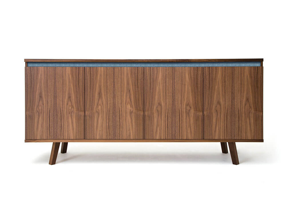 - The credenza is available with oak or natural walnut veneer carcass, with either a veneeredtop surface or laminated top surface, with a single adjustable shelf.