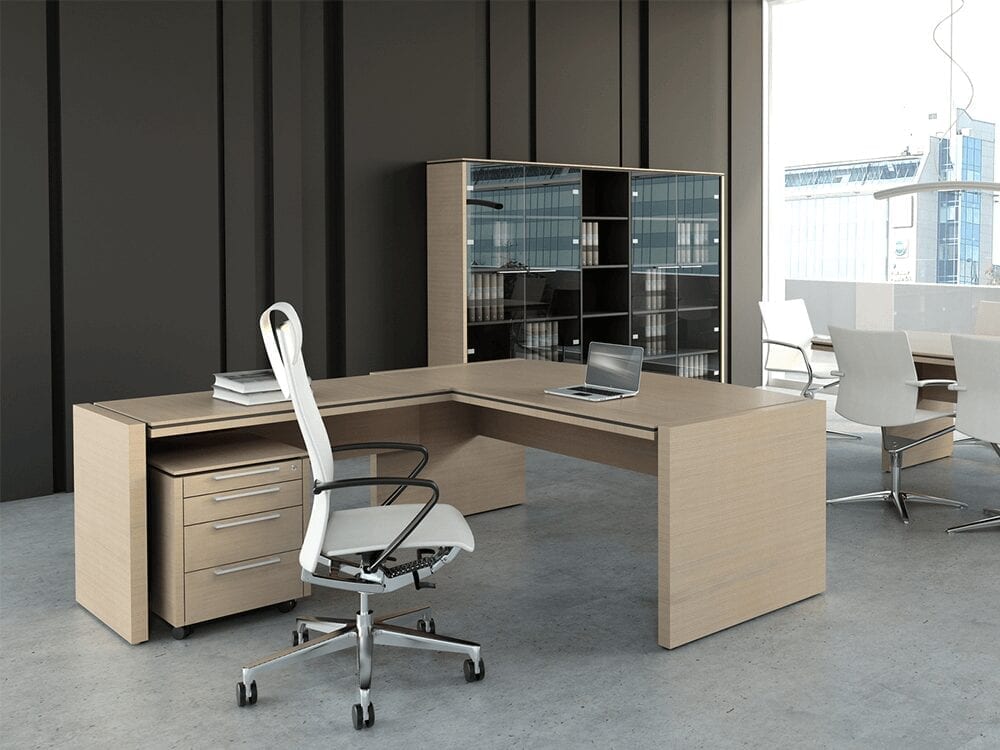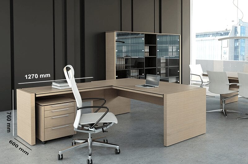 Make your work day easier by surrounding yourself with inspiring office furniture like our bow front executive desk with slab legs. Percy is crafted from a variety of melamine finishes, sizes or return. Fitted with a modesty panel and 12mm anthracite detailing. We recommend this executive desk in Canadian Oak for a superb contemporary style.