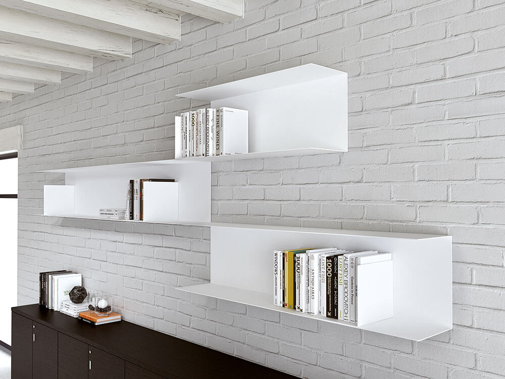 - Steel Bookcase: The library is made of a 3 mm thick steel sheet, section D263xH367 mm. The bookshelf can be equipped with a book holder L – shaped, made of a 3 mm thick steel sheet, with section D250xH250 mm. The installation on the wall is made by means of special brackets welded to the back of the bookshelf.