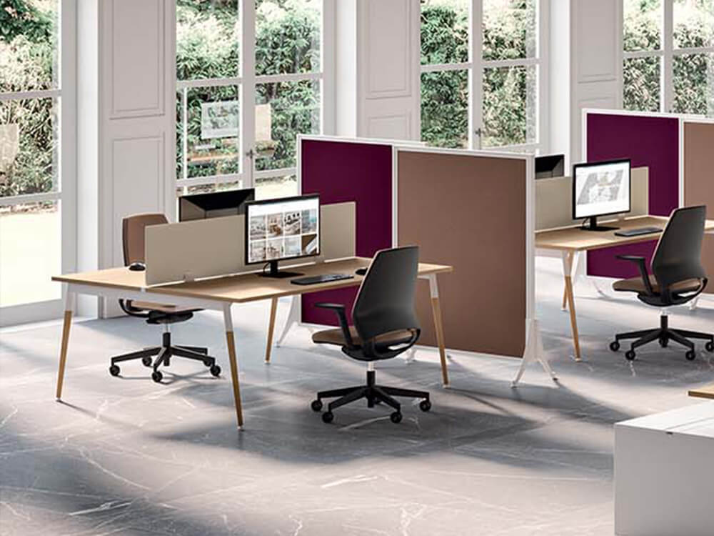 Romelia 1 - Double Bench Desk for 2, 4 and 6 Persons with Optional Dividing Screen