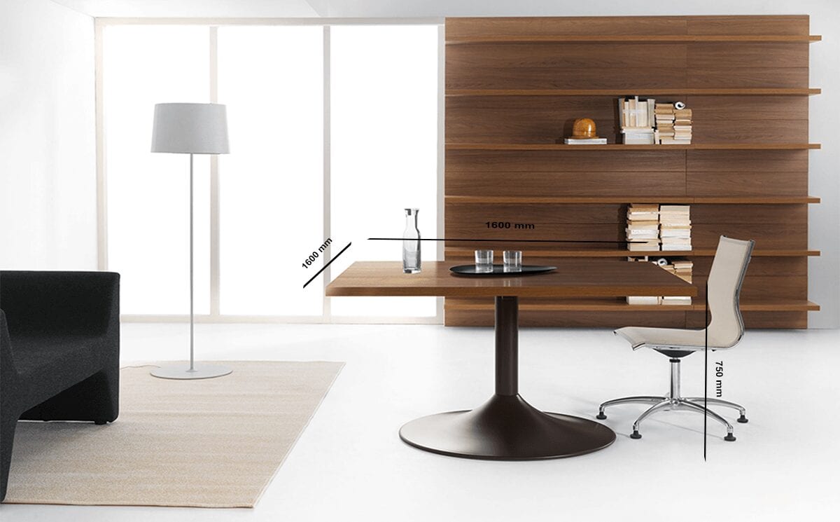 You will love the natural look of Rose and the contrasting designs of the circular trumpet base and square meeting table. Couple up the large, eye-catching bronze round base with either Dark Oak, Natural Walnut, Oak or Rosewood for a classic element in your workspace. Choosing this meeting table for office is easy as with one size you only need to pick your favourite finish. Ideal for informal chats and brainstorming sessions.