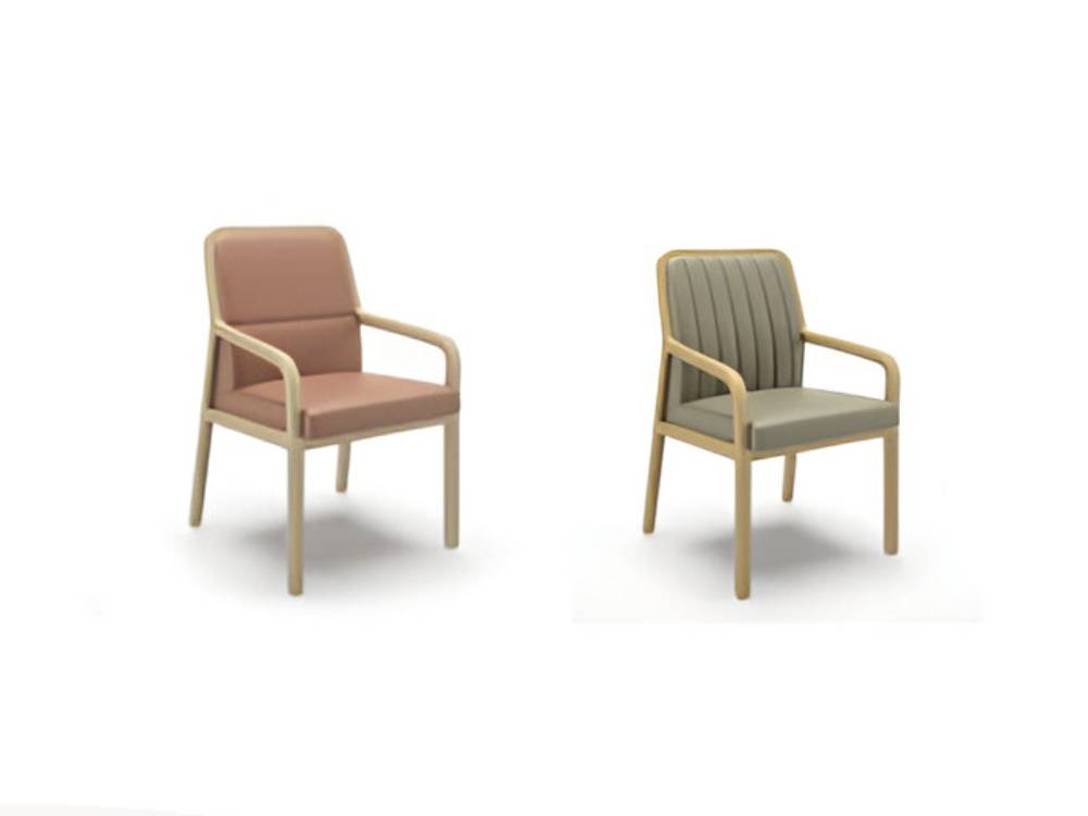- Upholstered Seat: Upholstered in natural leather or eco-leather, decorated with vertical stitching.