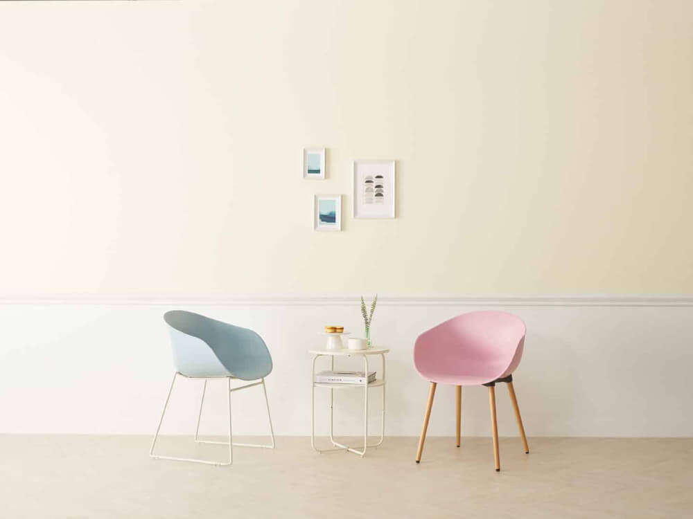 - Cup offers a variety of shell colours and leg options from a sophisticated sled frame through a wooden four-legged frame to a swivel on a five star base.